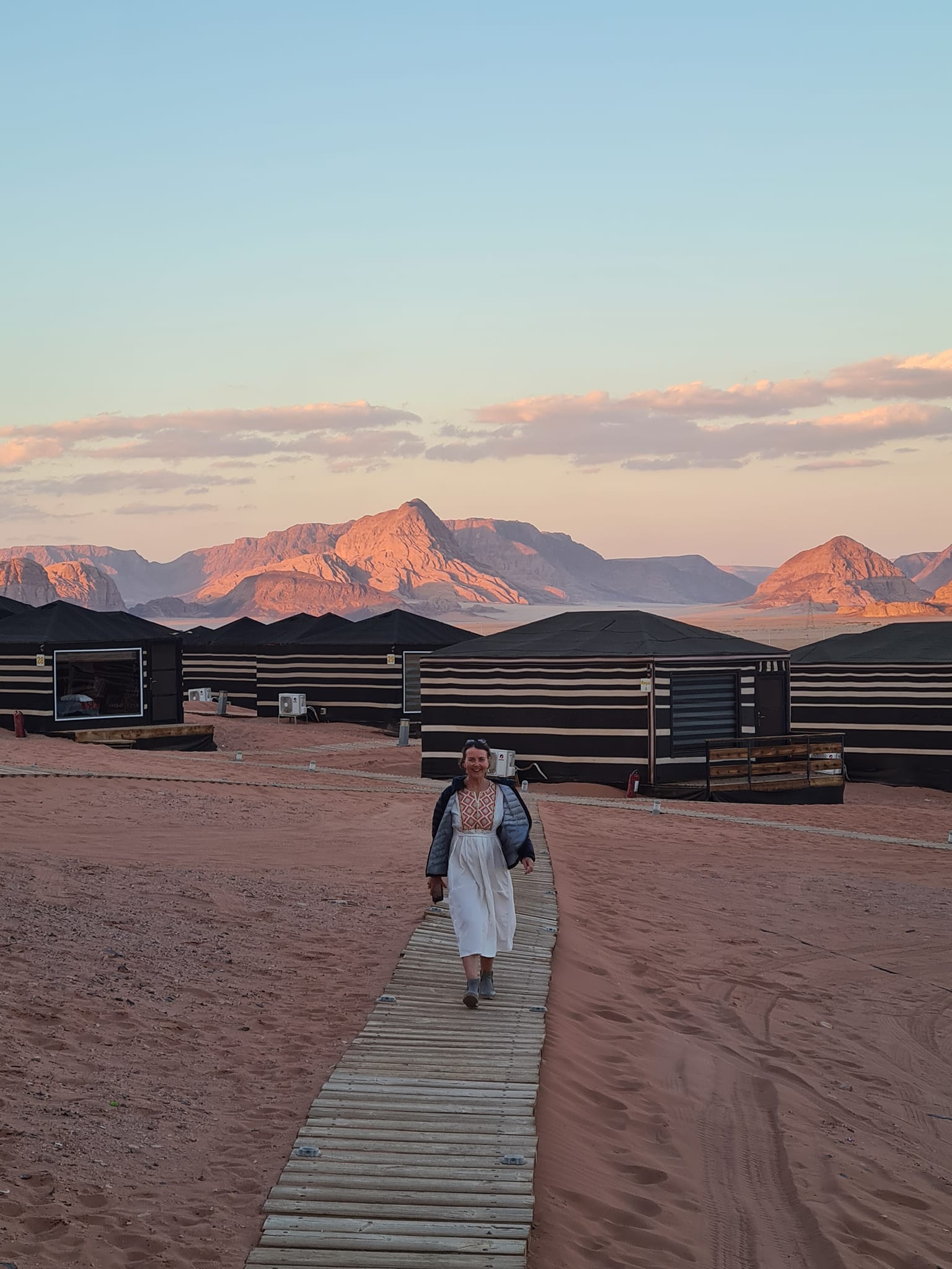Sleep in tents under the stars the sunset and sunrise are spectacular, the colours pink and ochres and unforgettable.