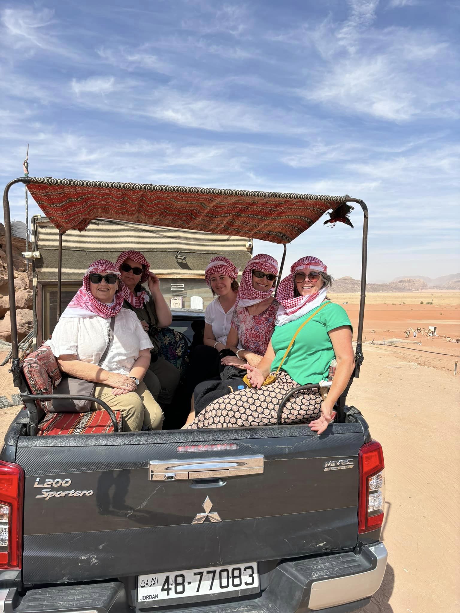 Ladies: Long shorts or ¾ length lightweight pants, a selection of wash and wear shirts. Lightweight dresses if you prefer. Knee length or below is good. Take one lightweight jacket, cardigans or jumpers for late night or early morning and warm pants and pyjamas. Scarf for mosque visit and a sarong over your swimmers in resorts. It will be cool in the desert so be sure to pack for very cold nights