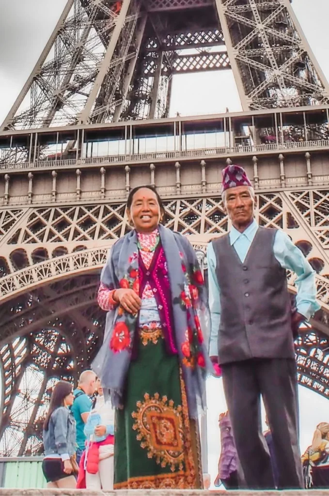 And just when you think the story couldnโt get more touching, imagine this: taking a sixty-something Nepali couple out of the mountains and to Europe for a month. Their reactions are priceless. Not the least bit impressed by the Eiffel Tower, yet utterly captivated by the milk aisle in a French supermarketโโAmama, amama!โโwondering how many buffalo must have been milked that morning to fill those shelves. Witnessing the ocean for the first time and trying to understand tides, asking whatโs stopping the water from coming further. And the most beautiful sign of all? The one on the plane that says Exit.